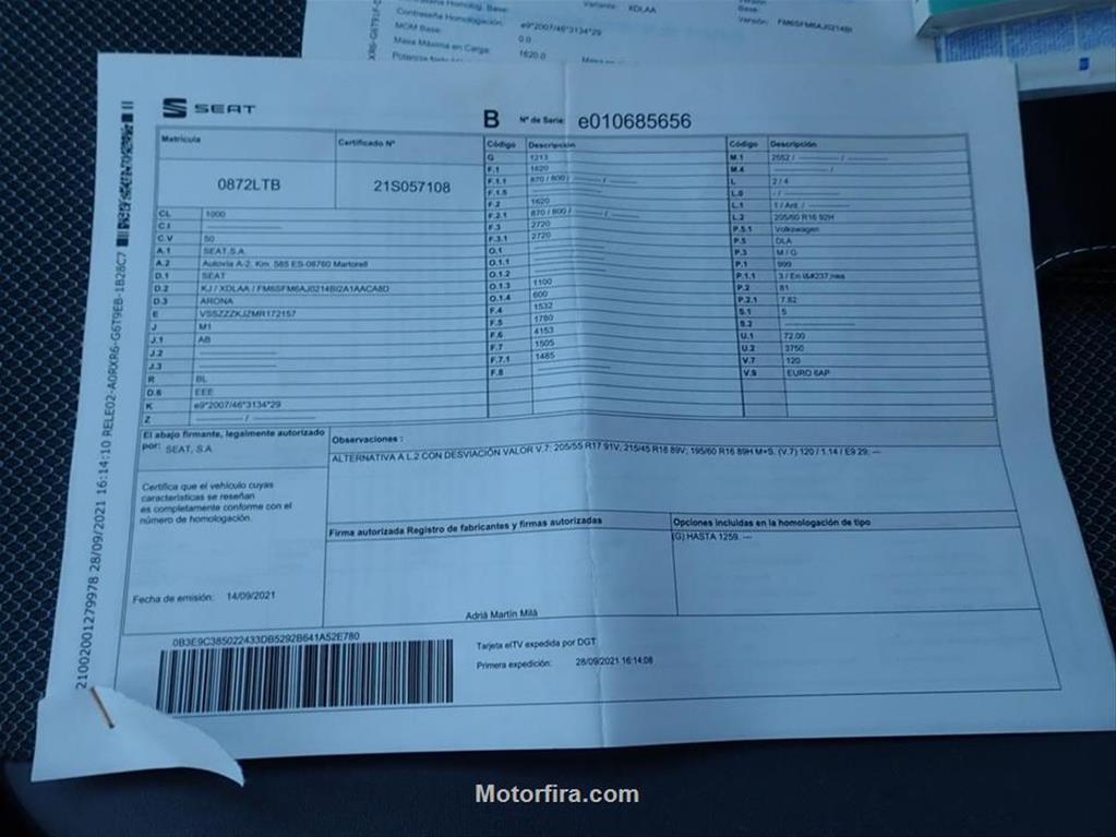 • 1ª Matrícula 28/09/2021