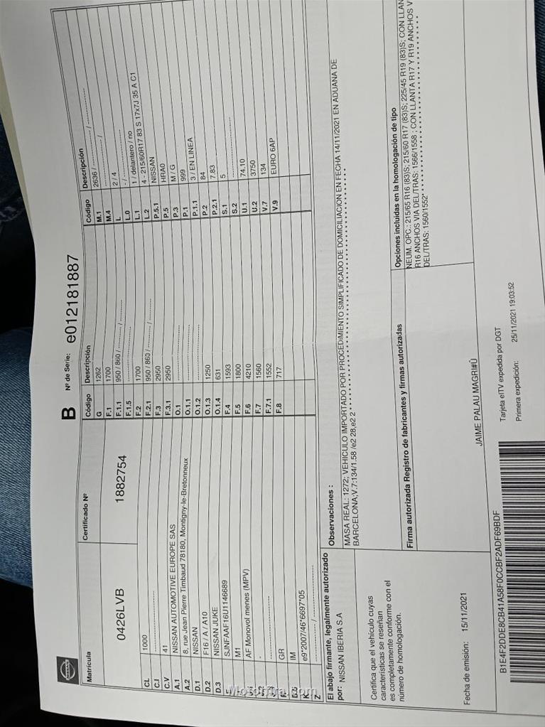 • 1ª Matrícula 25/11/2021